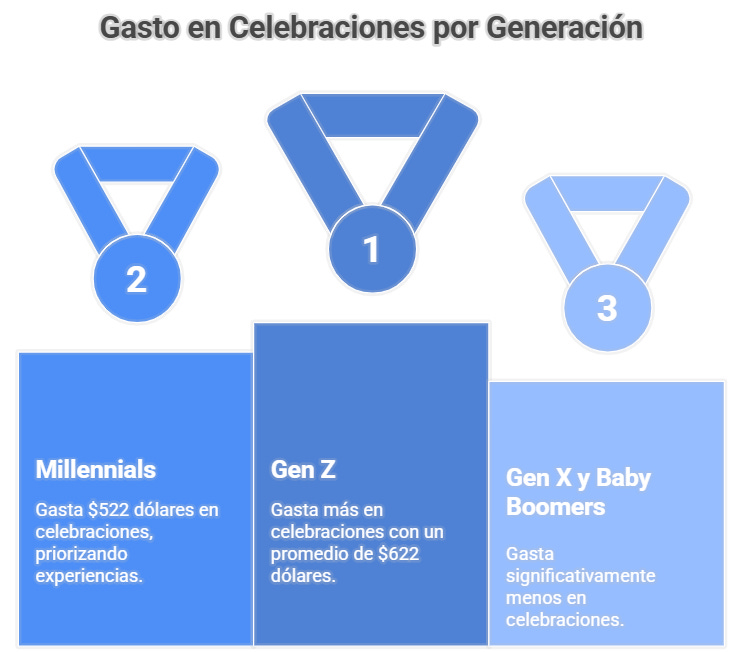 Gen Z: 93% festejan y gastan un promedio de $622 dólares. El efecto social y la comparación con pares incentivan incluso el gasto por encima del presupuesto.